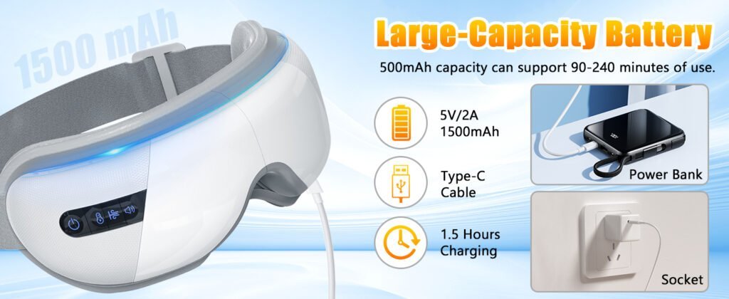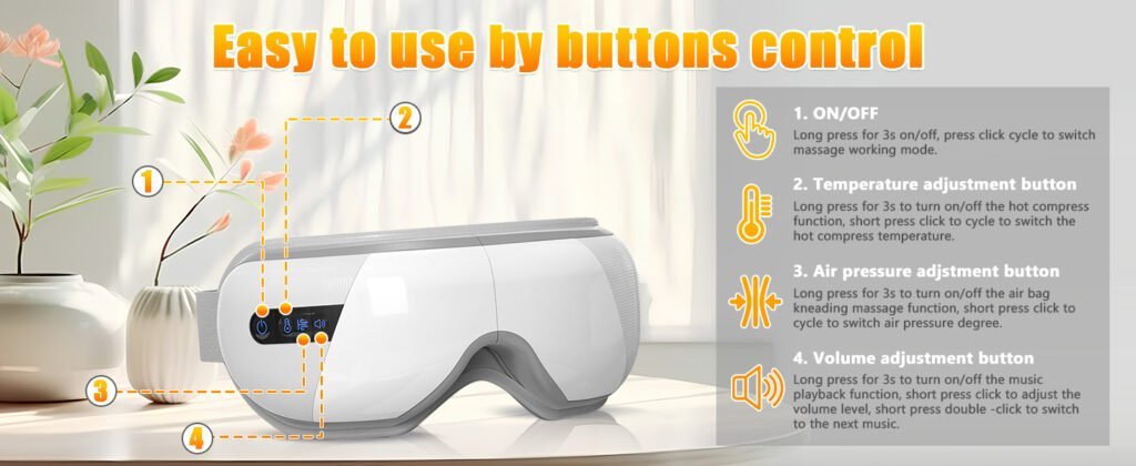 Los cojines de aire presionan suavemente los puntos de acupuntura, alivia la fatiga ocular en minutos.