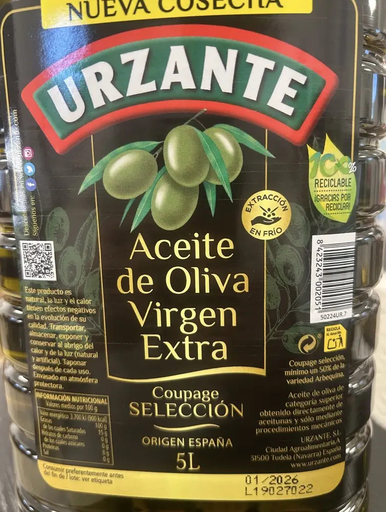 Calidad excepcional! El aceite de 5 litros es virgen extra, con un color y aroma que indican su frescura. Muy bueno.